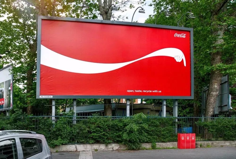 Como podemos ver, Coca-Cola convierte la icónica barra en un letrero de flecha que apunta a un contenedor de recolección de basura cercano. Coca-Cola utiliza este formulario para abogar por que debemos prestar atención a la protección del medio ambiente, y estos anuncios se concentran en áreas de estar, como señales de paradas de autobús, muros comunitarios y señales de publicidad dentro de la comunidad y así sucesivamente.