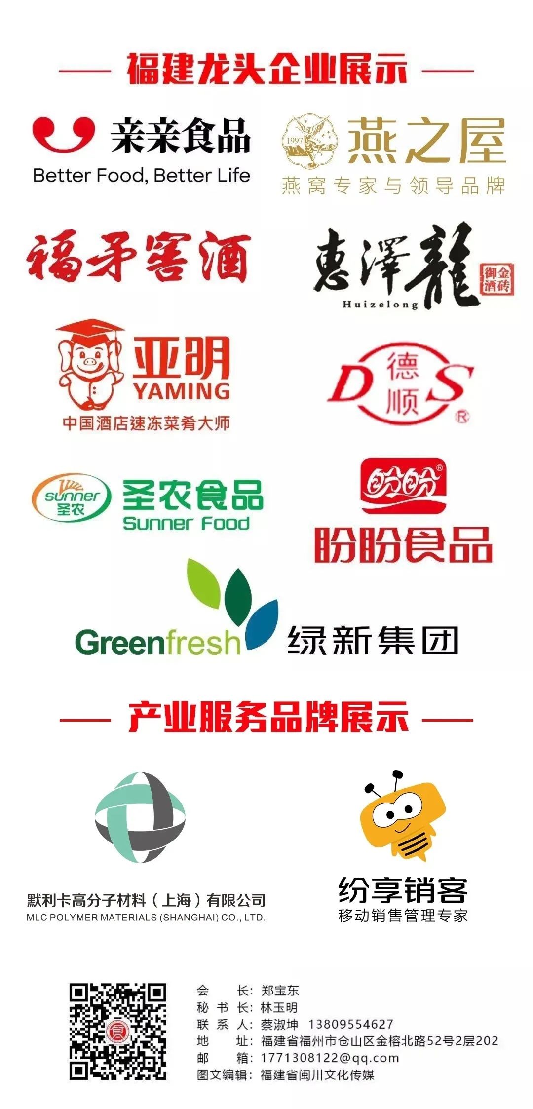 12、協会は、毎月の「福建食品」と協会の公式ウェブサイト、WeChatパブリック番号、Sina公式マイクロブログ、公式ビーコン番号を持ち、福建日報、中国食品新聞、Yi News、今日の見出し、Baiduニュース、テンセントニュース、その他のプラットフォームを使用して、現代のメディアを通じて企業を宣伝することができます。 共催雑誌「福建繊維」は、会員企業が業界情報を公開し、専門論文の出版チャネルを開拓し、会員企業にサービスを提供するためのマルチチャネルです。