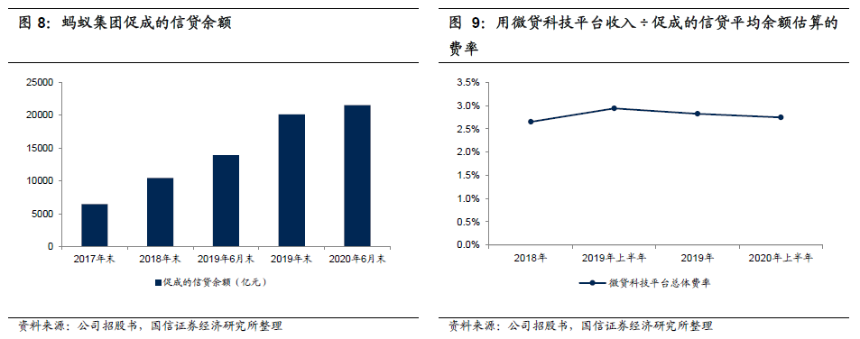 5.1 デジタル決済市場:着実な成長期に入り、その後の成長率は徐々に鈍化すると見込まれています日々の経験から、Ant Group のデジタル決済は、主にオンラインモバイル決済、スイープ決済、インターネット決済である必要があります。 デジタル決済に関する統計は複雑であり、複数のデータを使用してクロスディザリングを行います: 1)オンラインモバイル決済は、まだデジタル決済の主流ですが、市場の成長は安定しています。 預金準備金は、総準備金の増加から判断すると、アウトブレークの影響がなければ、成長率は20%以上と見積もっている。全体として、浸透率の上昇に伴い、デジタル決済市場は20%前後の安定的な成長期に入り、今後数年間の成長率は、社会消費全体の成長率、すなわち20%程度から約10%に徐々に低下すると予測しています。5.2 マイクロクレジット市場:ロングテールの消費者ローンスペースは依然として大きく、運用ローン市場は比較的成熟していますAnt Group のマイクロクレジットは、主に消費者ローンであり、運用ローンの一部です。 2020年6月末に開始された2.15兆元の信用残高のうち、1兆7,300億元は消費者ローン、0.42兆元は営業ローンです。Antグループの消費者ローン製品は、主に花やローンであり、その中でも、花はクレジットカードに似ていますが、ローンは現金ローンであり、両方の製品は短期ローンによって支配されています。 Ant Group が開示したデータによると、2020 年 6 月末にパートナーを通じて発行された消費者ローン残高は約 1.5 兆元と見積もっていますが、その協力機関である銀行と信託は銀行金融機関に属し、同時期の人民元消費者ローン (クレジット カードを除く) 残高は約 6.3 兆元で、Ant Group は非常に高い市場シェアを持っています。ヘッドユーザーの消費者ローン市場は成熟しており、ロングテールの消費者ローン市場は急速に成長しています。 2014年から2015年の間に公的ローンの利回りが低下し、不良債権のリスクが急激に高まったため、銀行は今後数年間で小売りを変革し、消費者ローン市場の急速な発展を促進しました。 一般的に言えば、銀行の消費者貸し手は、主にヘッド顧客であり、その利点は、低金利、大きなクォータ、柔軟な期間であり、Antグループや他のインターネット機関は、主にロングテールの顧客グループであり、金利は高いが、操作コストとリスクコストを低減するために大量のユーザーデータのシーンガイドと蓄積に依存し、銀行との差別化競争は、主にユーザーの短期、小さなターンアラウンドのニーズを満たすことができます。 銀行のクレジットカード貸出残高の伸びをみると、ヘッドユーザー市場は成熟している可能性があり、ロングテールの消費者ローン残高は急速な成長を続けている。消費者ローンは供給促進市場であり、現在、多くのインターネット機関や消費者金融会社がロングテールの顧客市場で事業を展開しており、短期的にはオンライン消費者ローン残高は急速な成長を維持すると見込まれています。 この市場が直面している不確実性は、ローン発行の増加が、共債務リスクや顧客沈下による信用リスクなどのリスクの増大につながる可能性があり、この市場の境界がどこにあるのか、また、Ant Groupの収益予測を行う際に、その信用残高のシナリオ分析を行うという事実です。消費者ローン市場とは異なり、個人事業ローンは比較的成熟した市場であり、金融機関が発行する個人事業ローン残高の伸びは近年急速に増加しています。 インターネット機関がビッグデータなどの手段を通じて低い運用コストでリスク価格の問題を解決できる場合、オンラインの個人事業用ローンは、比較的急速に成長する可能性があります。全体として、オンライン消費者ローンと個人事業用ローン市場は、今後数年間で約15~20%の中速成長を維持し、その後の仮定のベンチマークとして利用していると推定しています。Ant Groupの財務業務は、Tianhong残高宝に加えて、主に金融流通、公募ファンド、固定期間製品、銀行預金などの製品を販売しています。中国の住民の富の増加と金融意識の高まりに伴い、特に若者は、モバイルアプリで様々な金融商品を購入する傾向が強まる中、この市場の長期的な発展の余地は広く、市場は規模の拡大だけでなく、銀行などの伝統的な代理店からインターネット流通機関へのユーザーの移転も含まれます。Ant Groupの目論見書は、Oweiコンサルティングの研究を引用し、「中国がオンラインチャネルを通じて販売する個人投資可能な資産の規模... 2019年から2025年までの年間平均複合成長率は21.6%です。保険事業では、アリグループが代理する製品には、生命保険、健康保険、金融保険などがあり、そのプラットフォーム上の少数の保険は子会社のキャセイ保険から来しています。 Ant Groupの目論見書は、Oweiコンサルティングの研究を引用し、「2019年、中国のオンライン保険料は... 2025年には1.9兆元に達する見込みで、2019年か