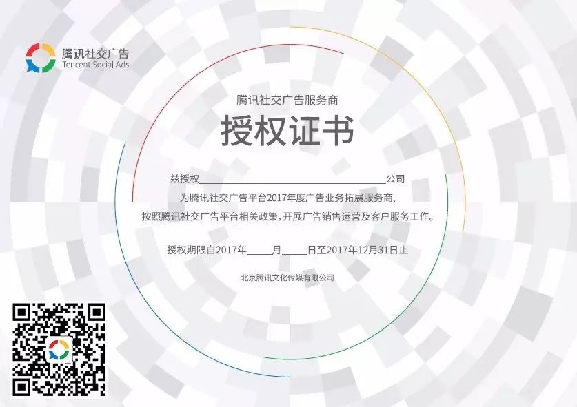 テンセントソーシャル広告2017の新しいサービスディーラー認定証明書が正式に稼働しました