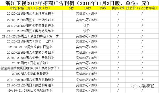 最近、Weibo Da V「テレビ出稼ぎ労働者アトンゴ」は、湖南テレビ、Zhejiang TV、オリエンタルテレビ、江蘇衛星テレビの4つの第一線テレビ局の2017年の広告価格を公開するマイクロブログをリリースしました。 テレビドラマやバラエティー番組の広告配信価格を一目で確認できます。 Xiao Yiバラエティは、主に金曜日の夜から日曜日の夜の季節と週の放送に焦点を当て、バラエティ番組の一部を抜粋し、整理します。