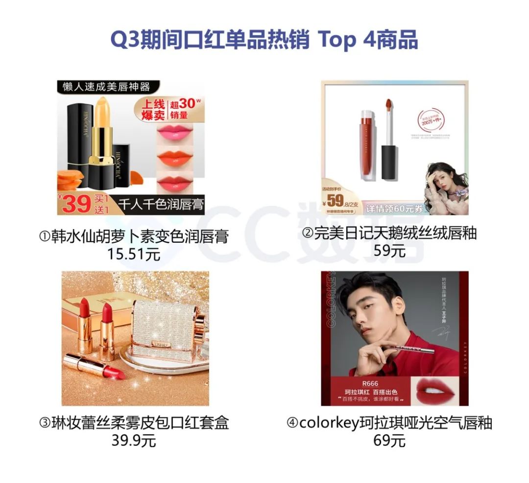 Q3期の小紅書人気ファインメイク商品のうち、最も議論の的となったのは口紅で、ファンデーション、アイシャドウ、香水が続いた単品を待ちます。