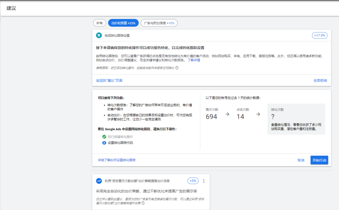 もちろん、すべての「推奨事項」に盲目的に従わなければ、推奨事項機能によって提供されるプラクティスは、分析と評価を必要とするか、逆効果になる可能性があります。 私たちが言いたいのは、より良い広告結果を得るためには、必ずしもより多くのお金を費やすことではなく、良い広告のコアは、適切な戦略を適用し、合理的な設定を行い、良い広告はテストされ、我々はより良い広告結果を達成するために継続的な最適化と改善を行う必要があります。