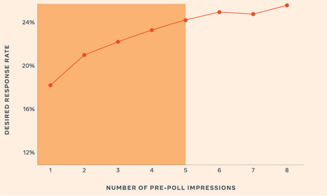 Facebookは、最適なインプレッション頻度があるかどうか、またクリエイティブがその数値にどのように影響するかを調べた上で、別の調査を実施しました。